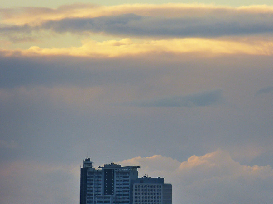 Le soleil créant des formes géométriques sur les facades des immeubles